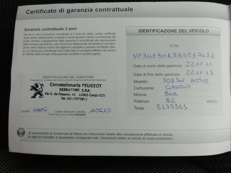 Fiche du véhicule : 308